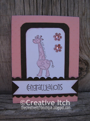 card that I made for a baby boy. I needed a girl version too, so I changed the colors up a bit and ended up with this...